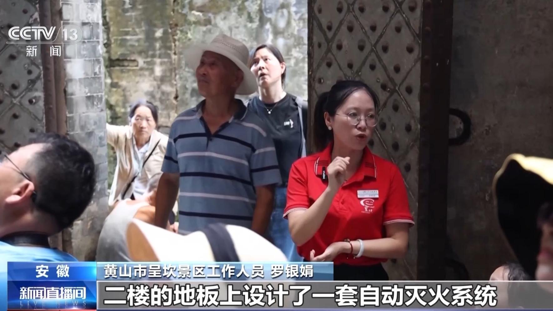 安徽省黄山市呈坎景区工作人员 罗银娟:二楼的地板上设计了一套自动灭火系统。这个木板的上面是一层小方石砖,中间铺了一层厚厚的干细沙,起火的时候会往上烧,木板烧个洞,这样一来沙子就会掉下来把火给扑灭。这套消防系统充分地体现了我们古人的智慧。