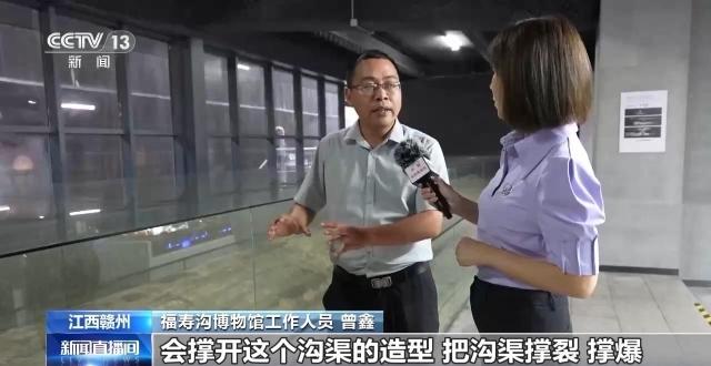 福寿沟博物馆工作人员 曾鑫:度龙桥靠近沟体的高度是2.5米高、4米宽,到出水口的位置,横切面整整缩小了5倍,它的坡度也有增加,水流就会加快,借助水势把水窗冲开,而且会把沟渠里面的沉积物排出到城外的江中,从而保持福寿沟的畅通。