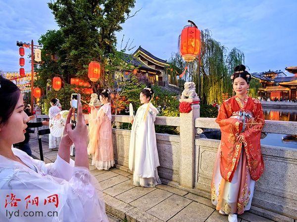 眼下,在洛阳市的街头巷陌,随处可见的汉服装扮让人不辨古今。“来一次洛阳、穿一次汉服”成为无数人的浪漫之约。依托“汉服经济”,洛阳激活文旅融合一池春水,举头是千年历史,低头是现代文明的“沉浸式体验”新场景随处可见。步入夜色下的隋唐洛阳城景区,鳞次栉比的复原建筑群灯火通明,贯穿南北的中轴线处处流光溢彩,《唐宫乐宴》《神宫乐舞》《寻洛奇遇》等沉浸式表演带领游客一秒“穿越”;在大河荟的一处“神秘空间”内,如帘的水幕倾泻而下,身着华服的“洛神”裙袂飞扬,向游客讲述千年前的故事……