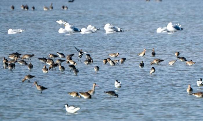 天津七里海湿地自然保护区内拍摄的候鸟。新华社记者 孙凡越 摄