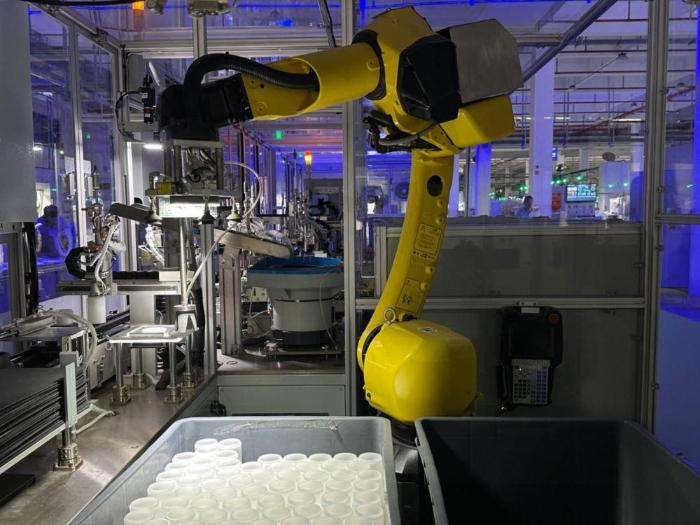 南安一家卫浴企业生产线上,机械臂正在给智能马桶盖板涂层刷圈。(受访者供图)