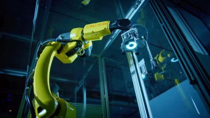在九牧集团精密注塑车间,数台自动搬运机器人在车间与仓库间穿梭,注塑机台上的机械臂搭载红外摄像头,自动抓取物料。