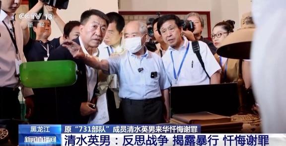 8月13日,侵华日军第七三一部队原队员清水英男一行,来到位于黑龙江哈尔滨市平房区的侵华日军第七三一部队罪证陈列馆,进行指认谢罪。这次来到哈尔滨,清水英男面对媒体,再一次回顾了自己在“731部队”的经历,并表示了深深的歉意与忏悔。