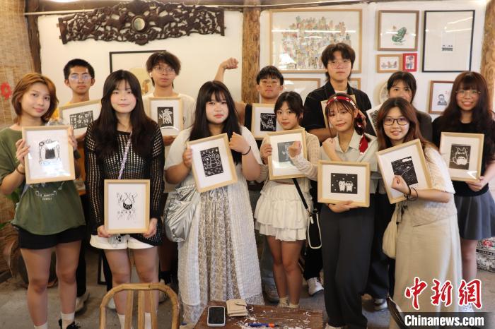 8月15日,台湾青年展示制作完成的版画。傅飞扬 摄