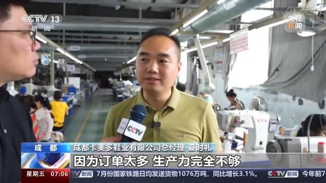 成都卡美多鞋业有限公司总经理 夏时礼:因为订单太多,生产力完全不够。去年我们大概每天生产3000双,今年要增长一倍两倍。