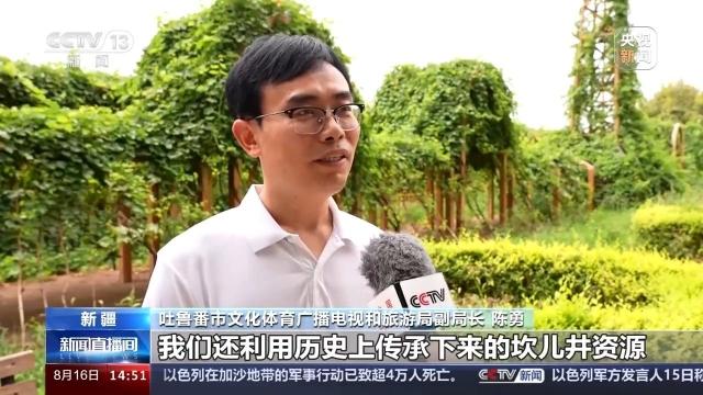 吐鲁番市文化体育广播电视和旅游局副局长 陈勇:除此之外,我们还利用历史上传承下来的坎儿井资源,开设了坎儿井游乐园、民俗园、传承区等特色旅游景区、景点,向国内外游客系统展示了坎儿井的原理结构、开挖技艺、文化内涵以及其中蕴含的生态智慧。凝聚着各族群众智慧的坎儿井,现在已经成为国内外游客到吐鲁番必去的热门“打卡”地。