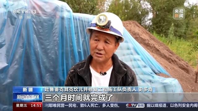 吐鲁番克其克坎儿井修复工程施工队负责人 史多奇:过去,挖掘200米需要一年多的时间,但是我们现在,三个月时间就完成了。