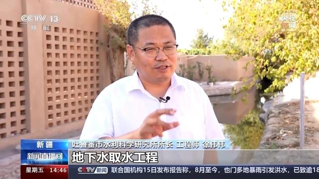 吐鲁番市水利科学研究所所长 工程师 徐伟伟:坎儿井是巧妙利用地形地势开凿的地下水取水工程,对于绿洲的农业和生态灌溉非常重要。吐鲁番好多村名,后缀都有“坎儿孜”,就是坎儿井的意思。坎儿井修到哪里,哪儿就是绿洲,哪儿就是美好生态。