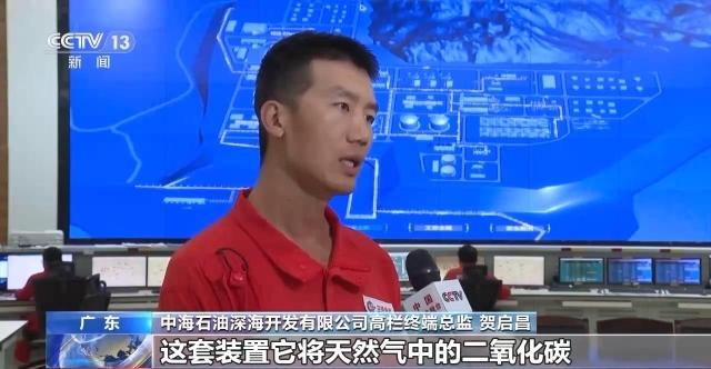中海石油深海开发有限公司高栏终端总监 贺启昌:这套装置将天然气中的二氧化碳进行了回收、提纯、液化,进行重复利用,产生的二氧化碳液态产品可以制成干冰、灭火器等装置,实现节能减排的同时,达到了经济效益的双丰收。