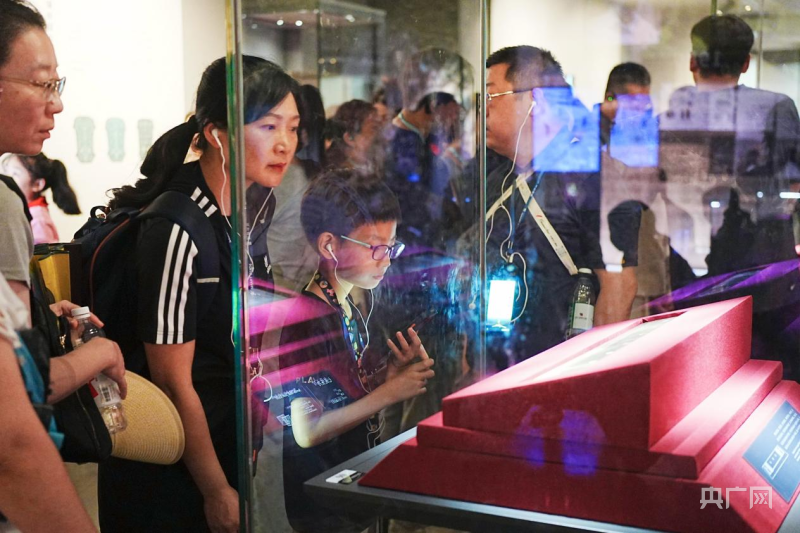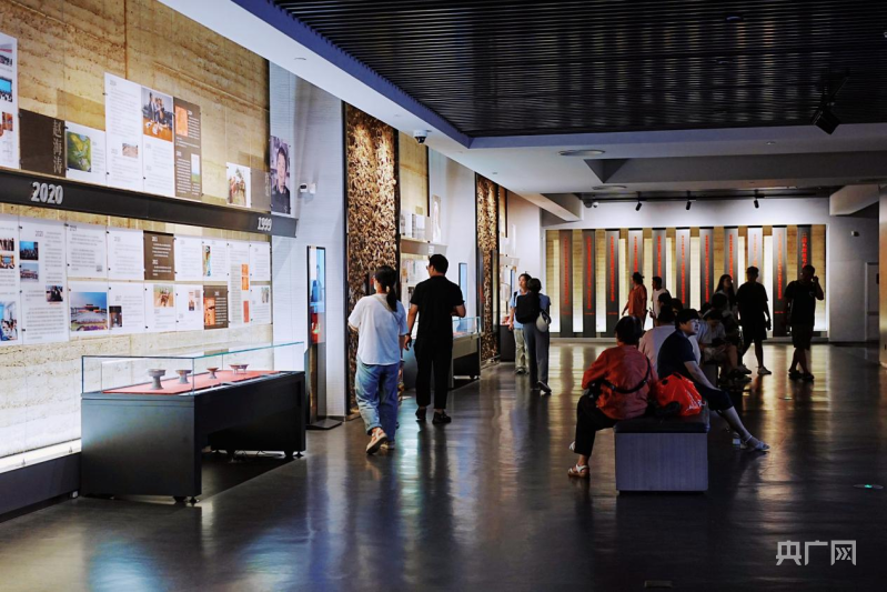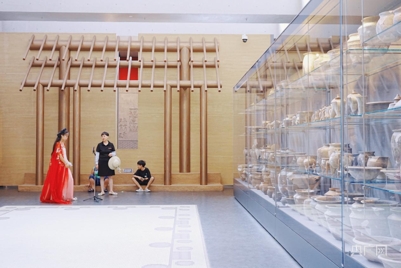 家长带着孩子在二里头夏都遗址博物馆内参观(央广网记者 张羲轮 摄)