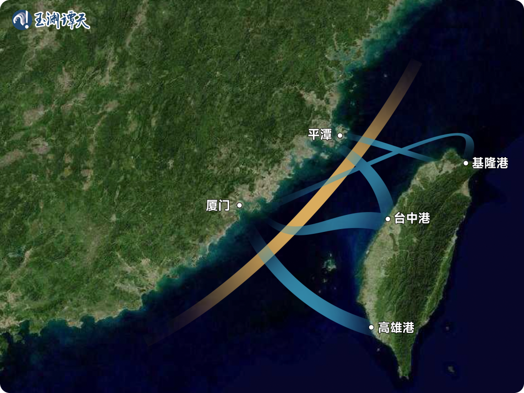 从图上可以看到,要到达台湾岛西岸,大多数船只都需要穿过台湾海峡中部海域。