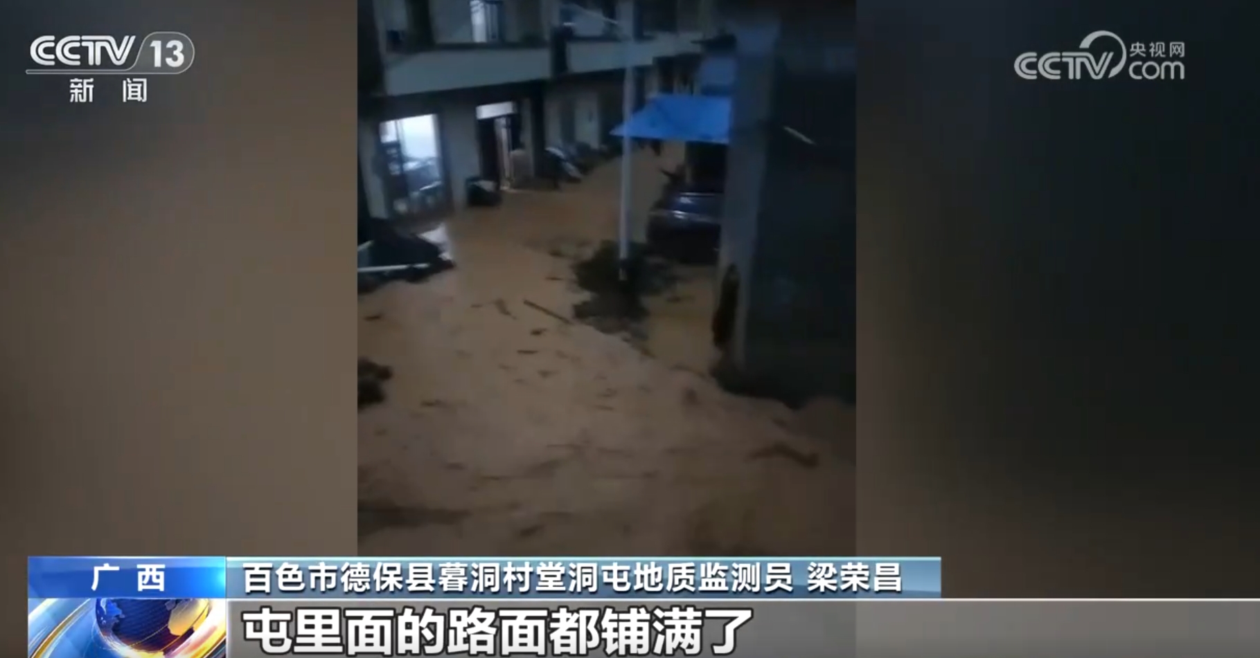 广西百色市德保县暮洞村堂洞屯地质监测员梁荣昌回忆称:“撤离完了,大概10分钟至20分钟,泥石流都哗啦哗啦地出来了,屯里面的路面都铺满了。”