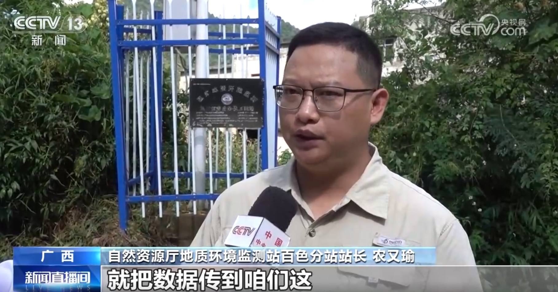 自然资源厅地质环境监测站百色分站站长农又瑜介绍:“泥位计是专门针对泥石流地质灾害研发的一套设备,它主要的原理就是通过监测泥石流沟里面是否有淤积堆积的情况,还有侦测河床高度的变化。监测到降雨量比较大,还有一些变形迹象之后,山上的监测设备就把数据传到咱们这。”