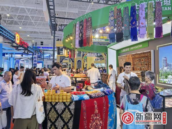 8月17日,第十四届“喀交会”土库曼斯坦展位吸引了众多游客。(薛玲摄)