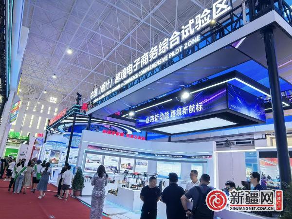 8月17日,第十四届“喀交会”中国(喀什)跨境电子商务试验区展位,参观者络绎不绝。(薛玲摄)