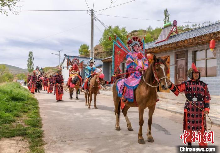 距隆德县城8.5公里的陈靳乡新和村,是国家非遗项目高台马社火的传习基地,记者在此亲历了一场社火表演。当天,村子里旗帜招展、鼓钹齐鸣,20多位社火表演者装扮成关羽、张飞、穆桂英等历史人物,骑乘高头大马列队前行,引得游客也纷纷加入画油彩、穿戏服、骑马等社火表演体验中。有游客称,因为这样的体验,对当地的文化特色产生很深的印象。