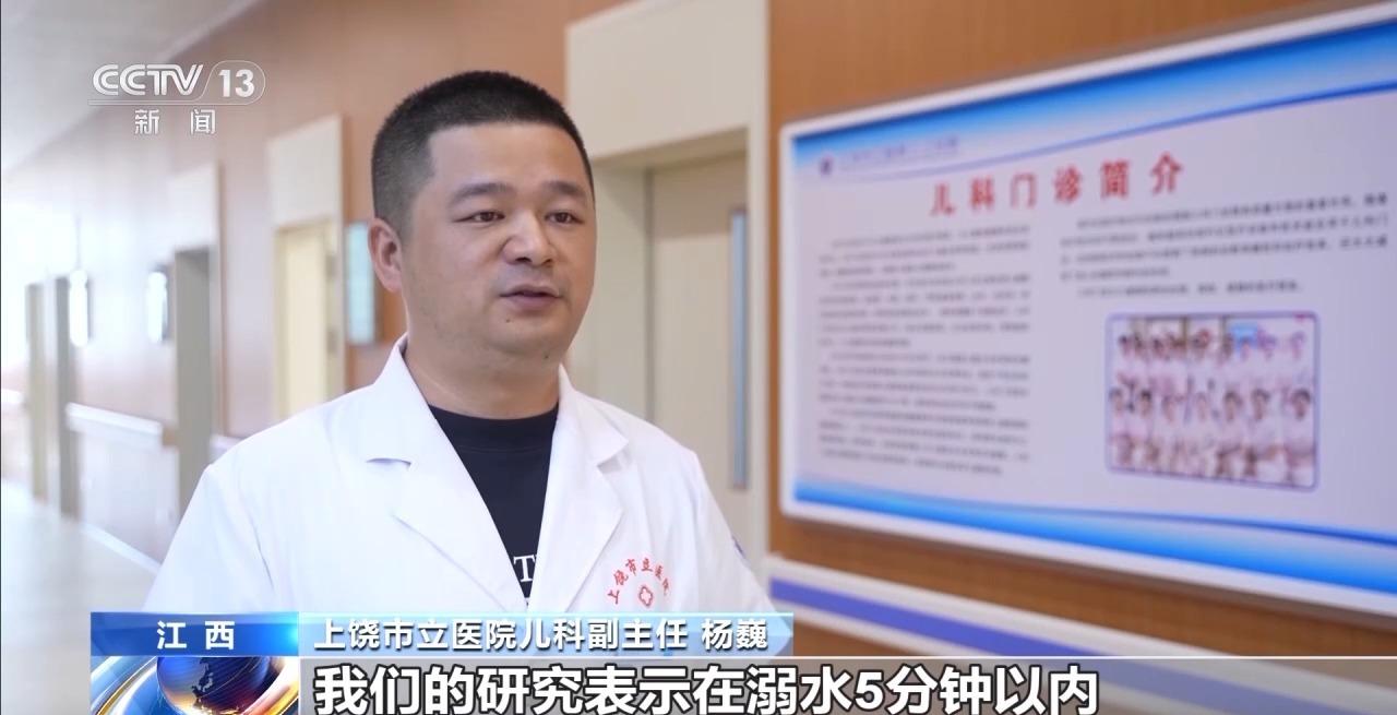 江西上饶市立医院儿科副主任 杨巍:我们的研究表示,在溺水5分钟以内,患儿出现神经功能损害或者死亡的风险为10%。如果溺水时间达到6分钟到10分钟之间,那发生风险的百分比是56%。当溺水的时间在11到25分钟之间时,出现严重神经功能损害的百分比已经达到了88%,当超过25分钟以上的溺水,那患者出现严重神经功能损害或者死亡的风险已经接近100%,所以我们一旦发生溺水,刻不容缓,立刻开始施救。
