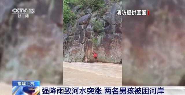 8月12日,福建上杭县消防部门接到报警称:当地因强降雨导致河水突涨,一位在河边玩耍的小孩儿不慎滑入河中,哥哥为救弟弟,也被困河中,打电话向家长求助。