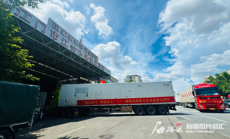 7月13日,载着300吨伽师瓜、唐王古瓜的货车缓缓驶入广东省江门市江会水果批发市场。广东省对口支援新疆工作前方指挥部供图