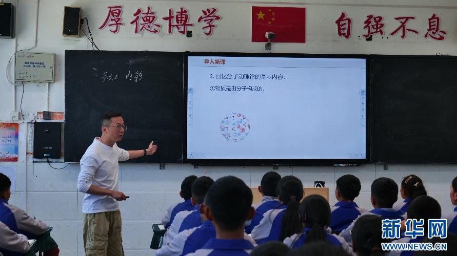 8月14日,援藏老师陆汶军正在上物理课。新华网发 吴金朋 摄