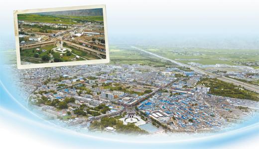 小图:20多年前的江孜县城。资料图片 大图:如今的江孜县城。记者 徐驭尧摄