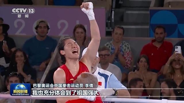巴黎奥运会中国拳击运动员 李倩:总书记说国运兴则体育兴,国家强则体育强。拳击项目在本次奥运会上取得三金的成绩,全都得益于国家的强大。我自己经历了三届奥运会,从里约的铜牌,到东京的银牌,再到这次巴黎的金牌,一直以来都是国家和人民支撑着我。当国旗在巴黎升起、国歌奏响的那一刻,心里真是充满自豪,我也充分体会到了祖国强大。