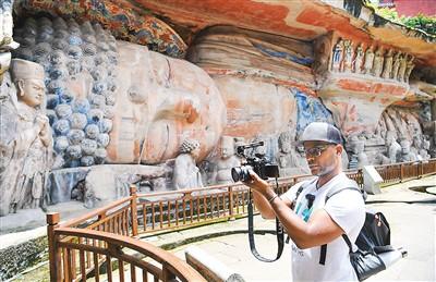 外籍游客在重庆大足石刻景区游览。新华社记者 王全超摄