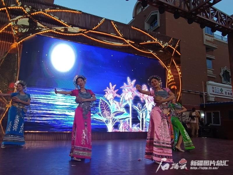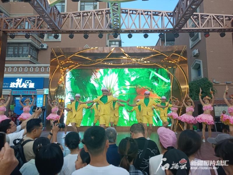 石榴云/新疆日报讯 8月22日傍晚时分,在乌鲁木齐大巴扎步行街,随着海口市艺术团带来的开场歌舞《请你常到海南来》音乐响起,现场气氛瞬间点燃,不少游客聚拢到舞台前,喝彩声、掌声、欢笑声此起彼伏。