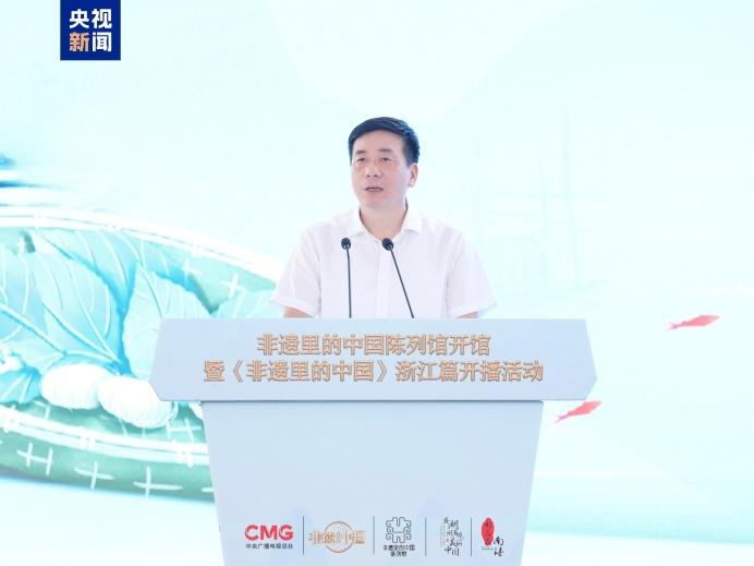 8月24日,我国首座展示全国各省份重要非遗文化的陈列馆——非遗里的中国陈列馆开馆活动在浙江省湖州市南浔区荻港古镇举行。中宣部副部长、中央广播电视总台台长慎海雄作视频致辞。中央广播电视总台总编室主任梁建增,浙江省湖州市委书记陈浩,文化和旅游部非物质文化遗产司副司长程亮,总台浙江总站党委书记、副站长胡作华,总台总编室副召集人兼综合频道负责人贺亚莉,浙江省文化广电和旅游厅副厅长李新芳,湖州市委常委、宣传部部长申中华,湖州市南浔区委书记温建飞为非遗里的中国陈列馆揭牌。