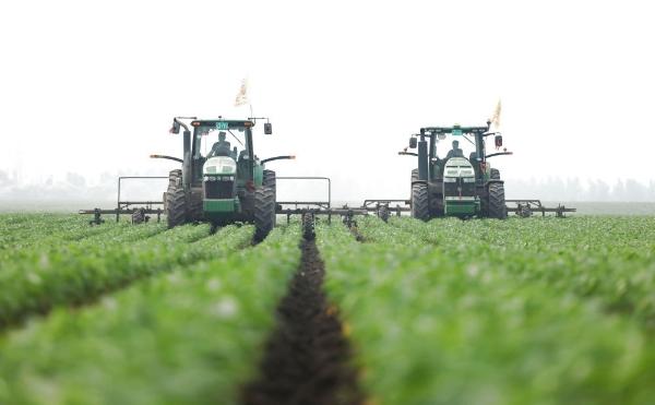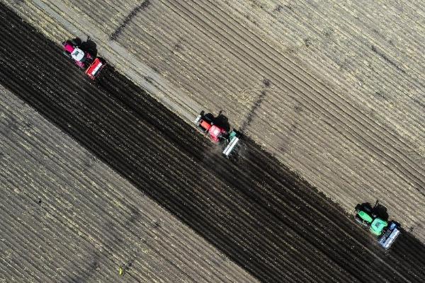 2024年6月25日,大型农机在黑龙江北大荒集团鹤山农场作业,为土壤增温放寒(无人机照片)。今年,黑龙江推进高标准农田建设、侵蚀沟治理和农田防护林更新修复一体化实施,建设高标准农田1400万亩、治理侵蚀沟1.2万条,全面加强黑土地保护利用。