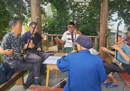 社区居民们正在用二胡乐器演奏民乐。光明网记者 孙满桃摄