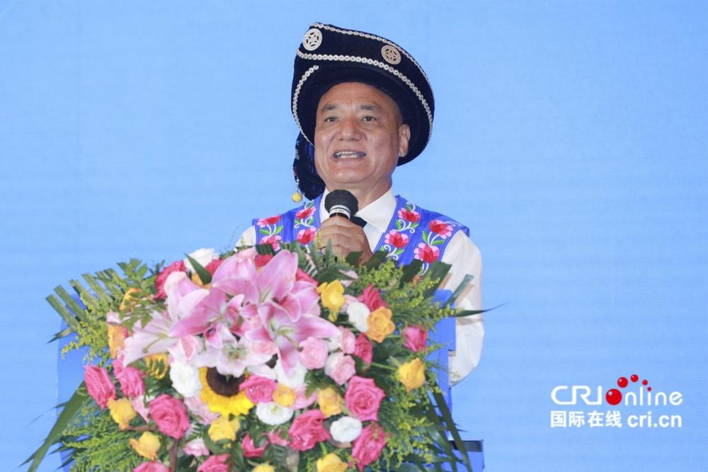 在8月22日举行的2024年“全国网络普法行·云南站”活动启动仪式现场,李学平分享自己的普法经历。(主办方供图)