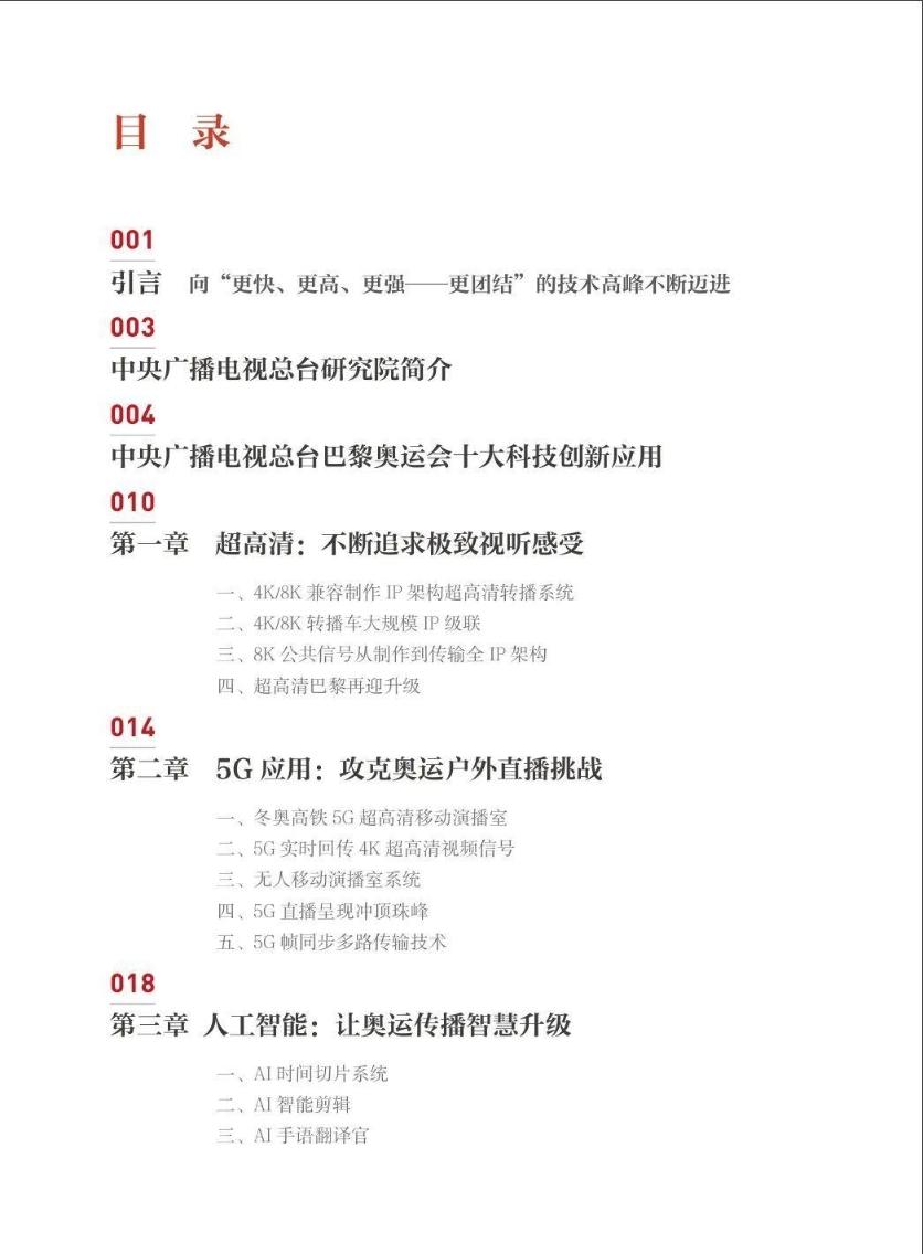 《中央广播电视总台奥运会赛事直播技术创新发展报告》目录