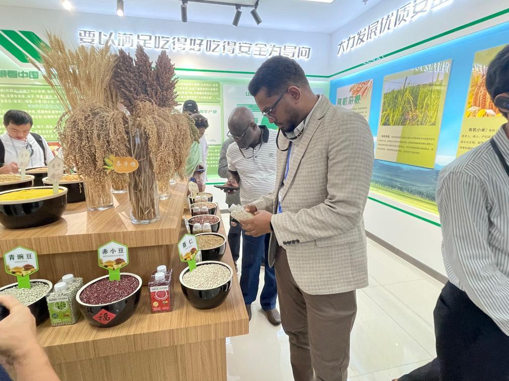 在晋中国家农高区智慧农场示范基地,议员们认真听取工作人员对各种农产品的介绍,询问种子的抗病特性、无人机的应用、智能种植机器人的操作方法,还饶有兴味地品尝脆枣、果汁、陈醋……