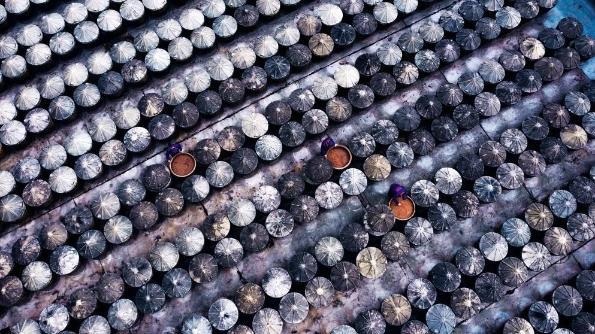 胡玉美酿造食品有限公司晒场上的酱缸。(受访者供图)