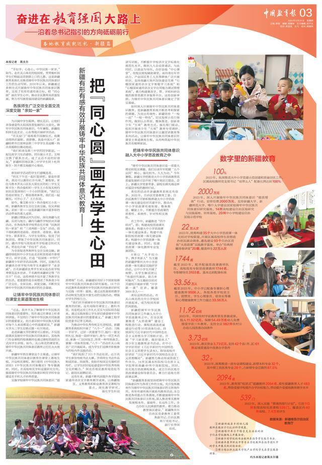 今天,“奋进在教育强国大路上——沿着总书记指引的方向砥砺前行”专栏之“各地教育成就巡礼”系列,通过一个视频、一组大图、一篇报道介绍新疆如何有形有感有效开展铸牢中华民族共同体意识教育——