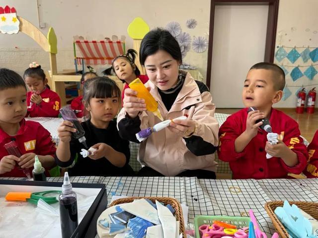 新疆拜城县乡村幼儿园教师在教孩子们认识科学现象。