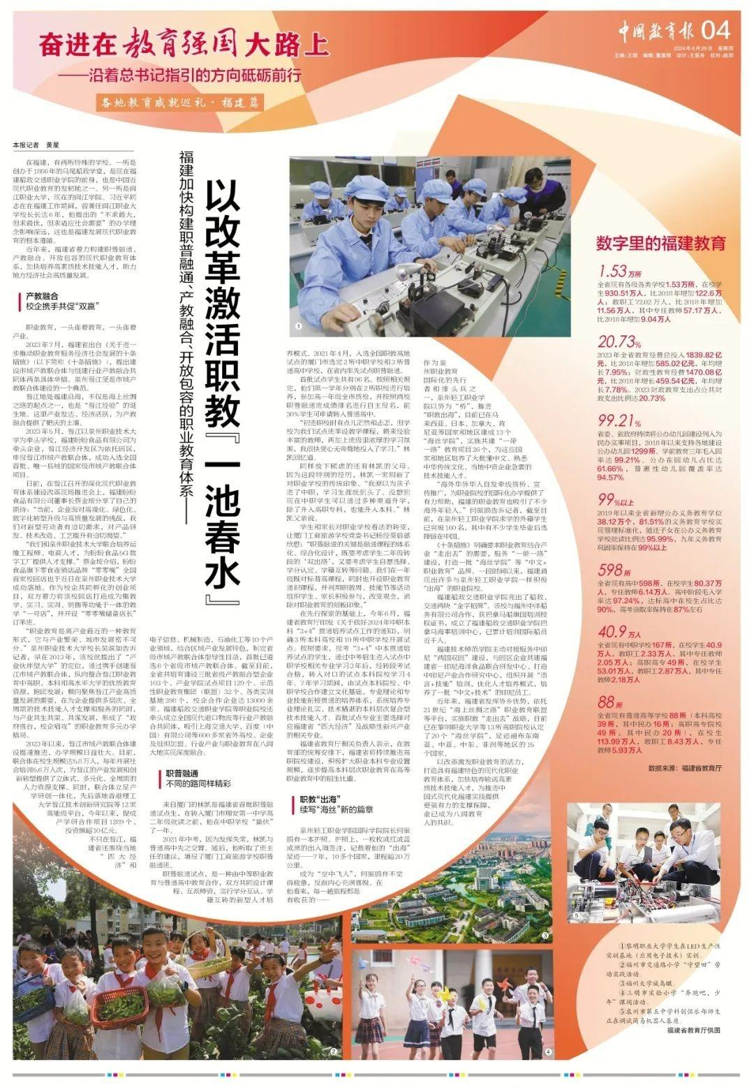 以改革激发职业教育的活力,打造具有福建特色的现代职业教育体系,加快培养输送高素质技术技能人才,为推进中国式现代化福建实践提供更强有力的支撑保障,业已成为八闽教育人的共识。