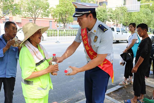 “战时消防员、平日志愿者”,这也正是大队多年来传承不变的奉献精神的生动写照。2017年,金寨县消防救援大队成立“映山红”志愿服务队,自此每年定期走进光荣院,探访烈士家属,看望困难职工,为他们送温暖献爱心,走进企业帮助排查消防安全隐患。同时,设立119爱心基金资助贫困学子。而今,这已成为服务地方的一张“志愿名片”。