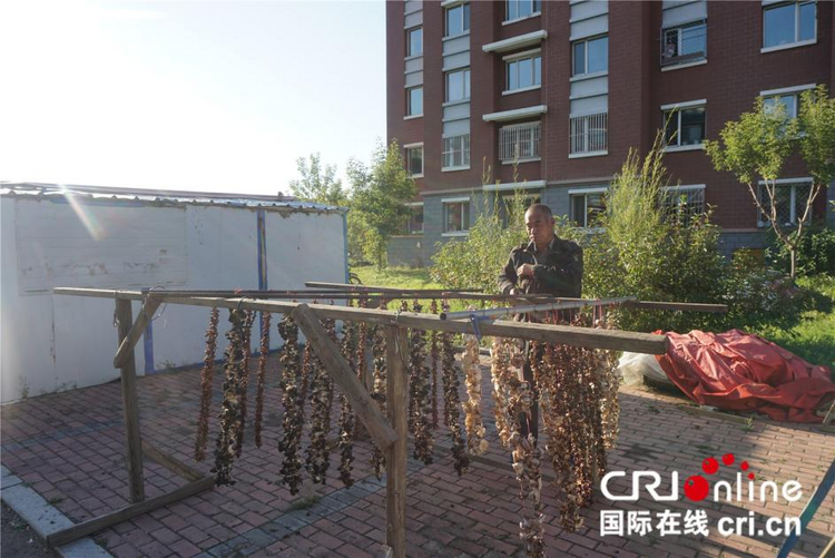 森旺社区居民在晾晒采摘的野生菌菇。(摄影 任丽君)