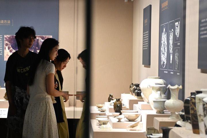 游客在宁夏博物馆观赏西夏瓷器(2024年8月22日摄)。新华社记者 毛竹 摄
