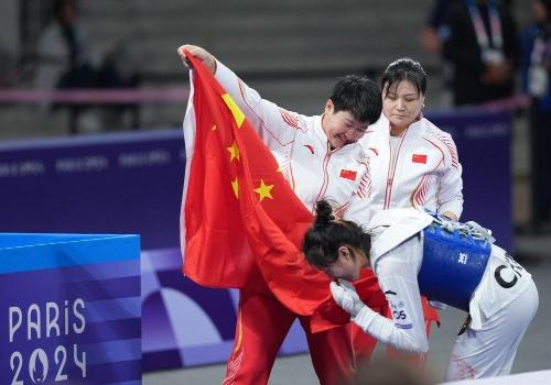 新华社巴黎8月31日电 夜幕降临,巴黎大皇宫内灯光璀璨。擂台中央,李羽洁与教练郁洁高擎五星红旗,绕场一周,而后相拥而泣。