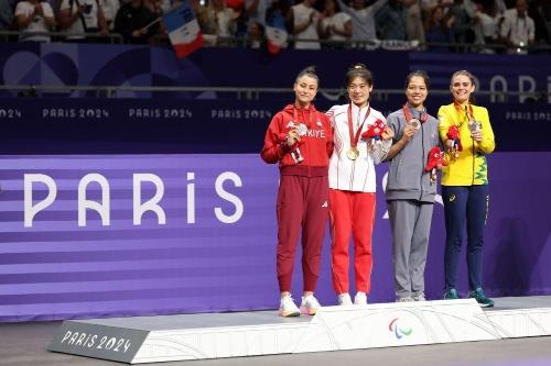 ↑8月30日,冠军中国选手李羽洁(左二)在颁奖仪式上。新华社记者 侯俊 摄