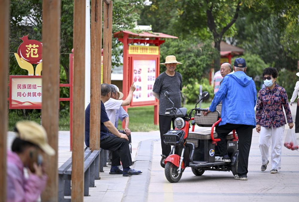 宁夏银川市金凤区长城花园社区居民在休闲、聊天(2024年6月20日摄)。新华社记者 冯开华 摄