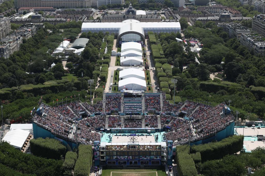 8月4日拍摄的埃菲尔铁塔体育场现场。新华社记者 黄宗治 摄