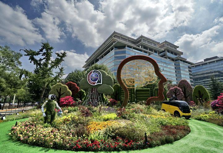 8月29日在北京西单路口拍摄的“美好蓝图”花坛。新华社记者 李欣 摄
