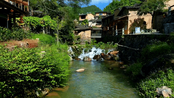 这是8月29日拍摄的龙潭村小溪两岸的古民居群(无人机照片)。