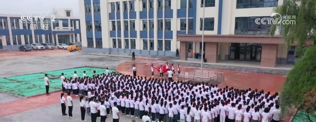 在积石山县大河家镇五一小学,师生齐聚在崭新的教学楼前参加升国旗仪式。五一小学是由全国总工会新建的一所学校,大部分学生来自四堡子小学。地震发生后,四堡子小学校舍受损,学生上学期是在学校空地上搭建的板房中度过的。积石山6.2级地震发生后,全县的学校不同程度受损,经过评估鉴定及优化布局,积石山县灾后共有15所新建学校、2所重建学校以及5个单体重建项目目前全部投用开学,学校还配备了校园网络、智慧黑板等。