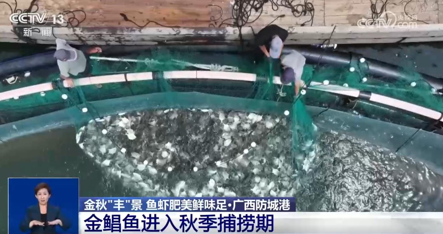 广西防城港地处北部湾之滨,水质优良,为金鲳鱼的养殖提供了绝佳的自然环境条件。 这几天,防城港的网箱标准化养殖金鲳鱼进入了秋季捕捞期。