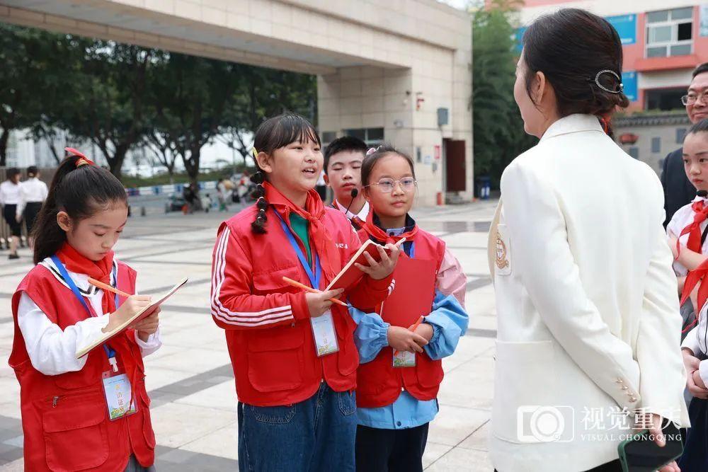 高新区科学城康居西城小学校,“小萝卜头”小记者们正在校园内进行采访。记者 崔力 摄/视觉重庆